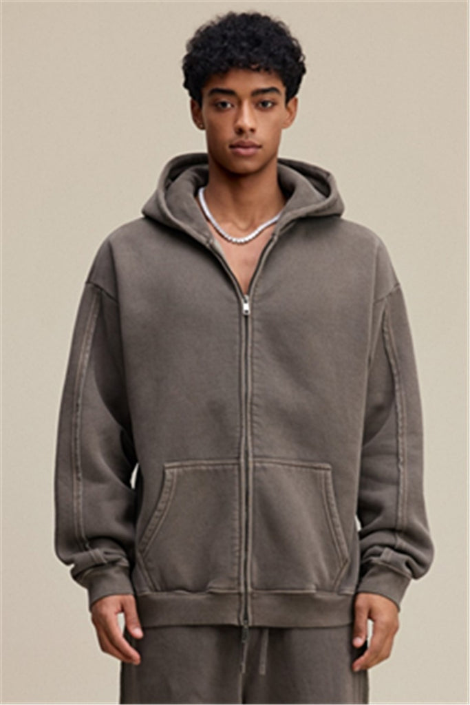 400GSM Distressed Washed Double Zip Up Hoodie