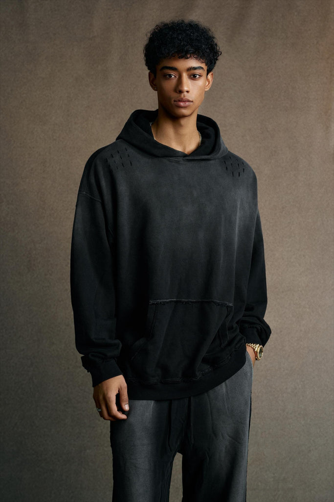 370GSM Gradient Sun Fade Distressed Hoodie